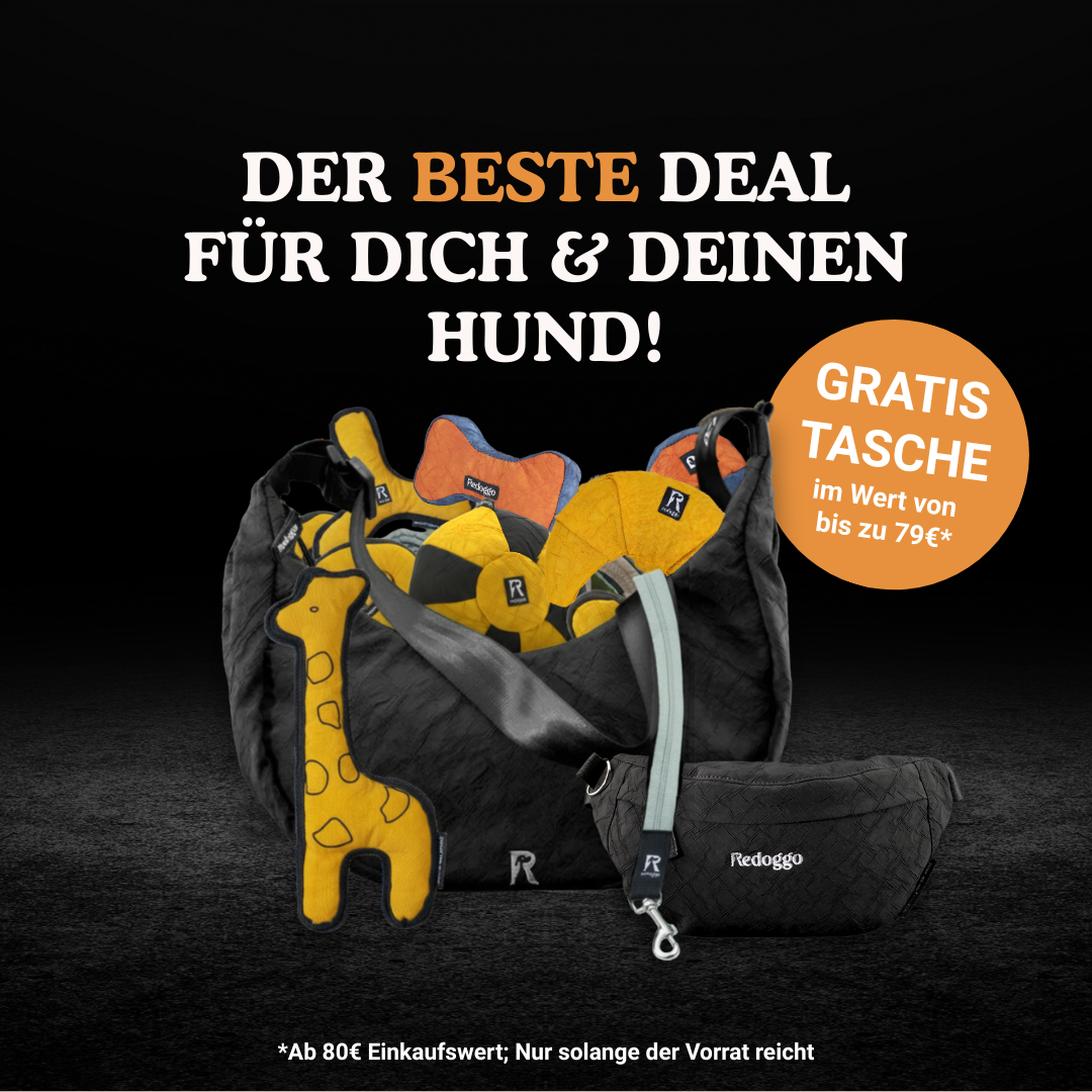 Ab einem Bestellwert von 80€ schenken wir dir unsere Moonbag oder Bauchtasche gratis dazu! Pack einfach die Tasche deiner Wahl in den Warenkorb und der Betrag wird automatisch abgezogen. So gönnst du nicht nur deinem Hund nachhaltige Spielfreude sondern tust auch dir und der Umwelt etwas Gutes! 🧡