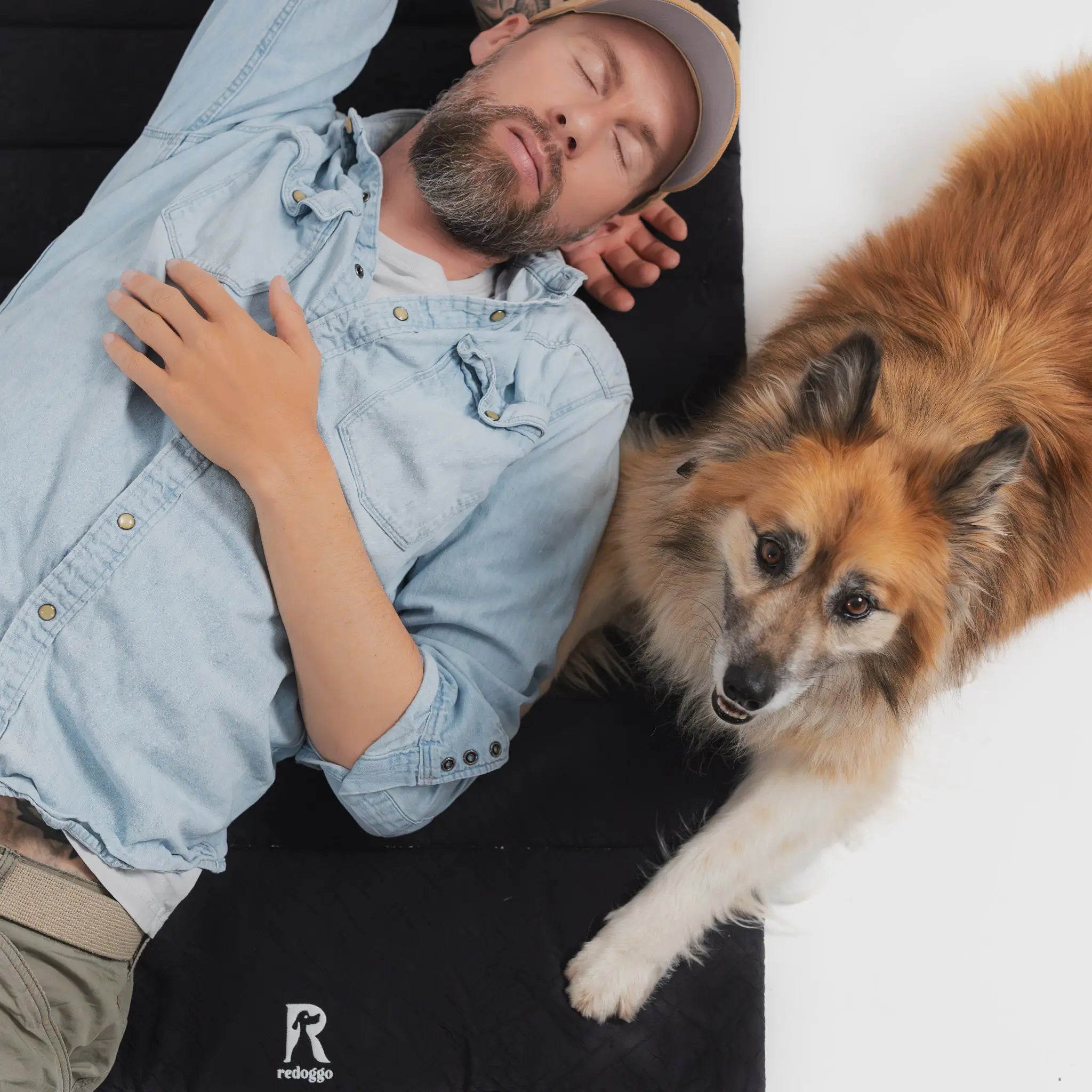 Die nachhaltige Hundedecke von Redoggo ist perfekt für unterwegs. Mit der praktischen Trageschlaufe kannst du sie bequem zusammenrollen und überallhin mitnehmen.
