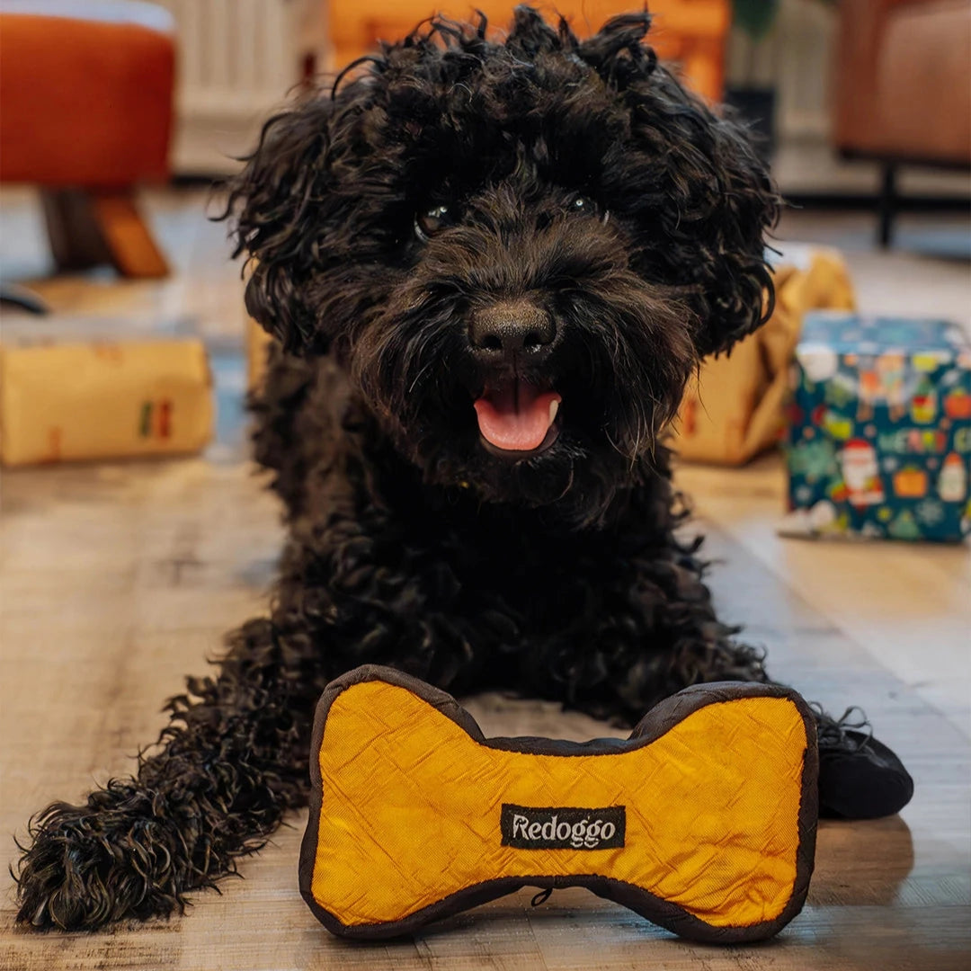 Der Knochen von Redoggo ist ein robustes und nachhaltiges Vergnügen für deinen Hund! Ein interaktives Spielzeug für gemeinsames Spiel und Training.